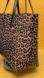 Stylish leopard print tote bag with black accents. Perfect for adding a bold touch to any outfit. The pouch measures 8 x 5 and closes with a zipper. The handle drop is approx. 8 “