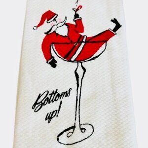 Kate Spade NY Santa Bottoms Up Raise A Glass Kitchen Dish Towels NWT
