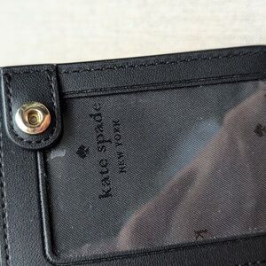 Kate Spade New York leather black and tan slim colorblock bi-fold wallet with gold hardware.