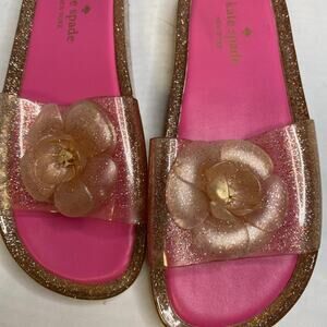 Kate Spade NY W7 Splash Glitter Jelly Slides Pink Sparkly Flower Sandals,