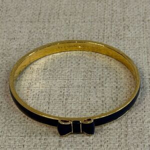 Kate Spade Navy Blue & Gold Enamel Take A Bow Bangle Bracelet