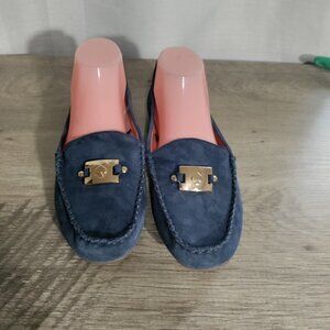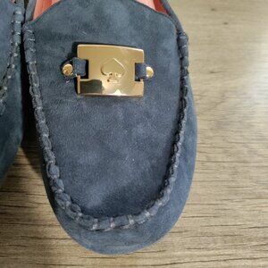 Kate Spade Navy Blue Loafers with Gold Accents