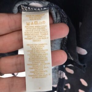 Long sleeve navy blue button down pajama shirt with pale pink polkadots. Trimmed in pink. Size medium
