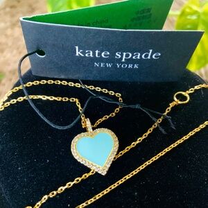Kate Spade Necklace TAKE HEART 🩷Charming TIFFANY BLUE CZ/ENAMEL GOLD CHAIN