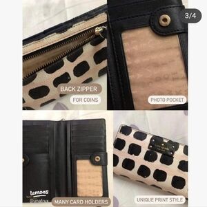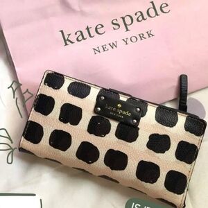 This Kate Spade wallet from the Neda Grove Street collection is a stylish and functional accessory for women. With a striped pattern in pink and white and black squares, it features a zip-around closure and leather material. The wallet is adorned with a zipper accent and measures 8 inches in length and 4 inches in width. It is perfect for keeping credit cards and other essentials organized, with plenty of pockets and compartments. Ideal for everyday use or special occasions, this wallet is a must-have for any fashion-conscious woman. MSRP - $238