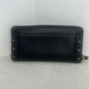 Black zippered wallet made of cow leather,16 card slots,zippered coin inside pocket adorned with mini studs