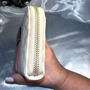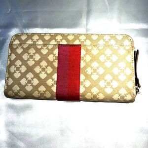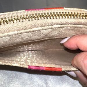 Kate Spade Neda Signature Beige and Pink Stripe Zip Around Wallet