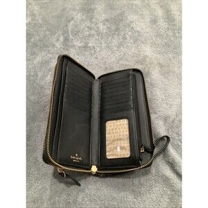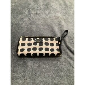 Kate Spade Neda Wallet Grove Street Printed Black & Beige Zip Around Wallet