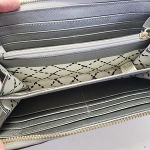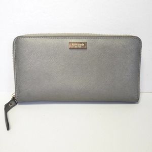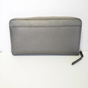 Kate Spade Wallet Metalic Clutch Accordion Leather Zip Around Gray