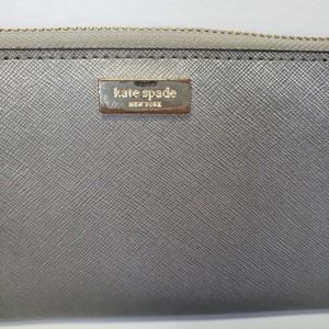 Kate Spade Neda Wallet Metalic Clutch Accordion Geniue Leather Zip Around Gray