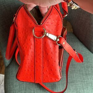 Kate Spade Neon Orange shoulder handle bag purse ostrich print - some wear read!