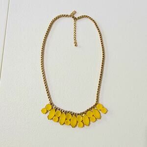 VTG: Stunning, neon yellow gold plated "Marquee" bib necklace with box style chain / resin bead prong setting / lobster clasp / chain extender / brown dust pouch / hallmark logo by Kate Spade New York.