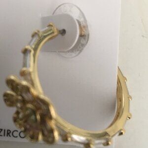 1" gold faceted hoop mounting 2 cubic zirconia flowers with pink baguettes. "Fleurette" collection. Studs. Gold findings. Retail - $149. NWT