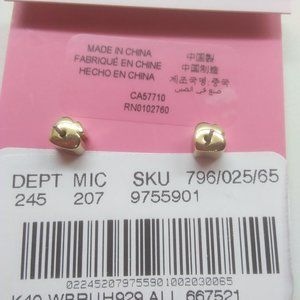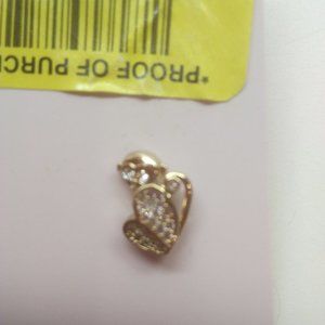 3/8" gold monkey with rhinestone at tip of tail peeking out from behind a gold pave heart. Studs. Gold findings. Retail - $58. NWT