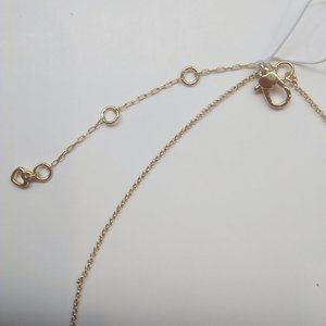 16" gold chain inclusive of 1-1/2" of decoration consisting of 3 red flowers of different shades with red rhinestone centers and gold trim suspending a 5/8" teardrop-shaped red stone. Lobster claw, 3" extender, and Kate's spade. Gold findings. Retail - $75. NWT
