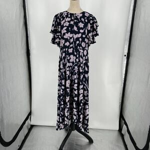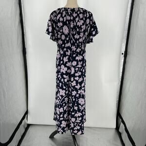 Kate Spade New Splash Ruffle Sleeve Midi Dress Navy & Cream Smocked Size 2