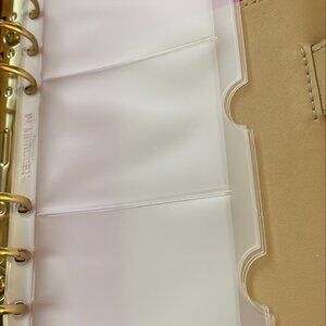 Clean interior, smooth zipper, rings click tightly. Inserts in unused/like-new condition.