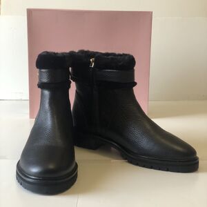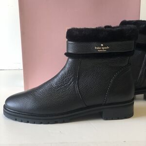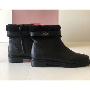 Kate Spade New York Bailee Winter Bootie Black Leather Faux Fur Trim Size 11 B