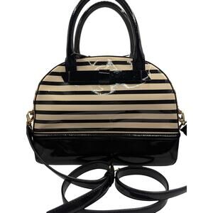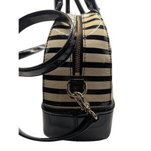 Kate Spade New York Black & Cream Striped Patent Dome Satchel Bag (Bow Accent)