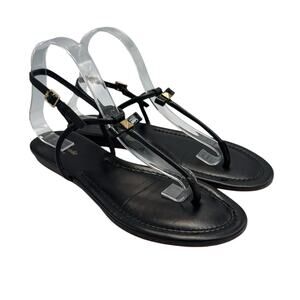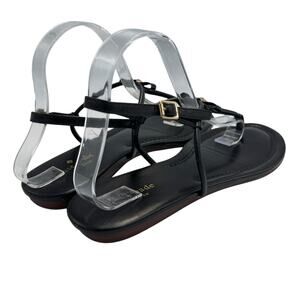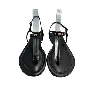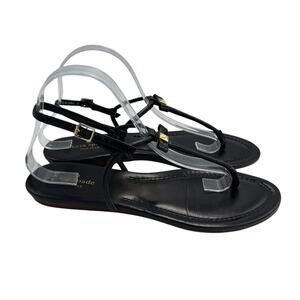 Kate Spade New York Black Leather Gold Gem Bow Strappy Flat Thong Sandals