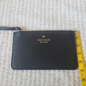 Kate Spade New York Black Leather Wristlet. Preowned. Minor wear on the wrist strap. Please see pictures for condition and measurements. Top Zippee Closure. Gold Tone Hardware. Good Condition. Smoke Free Home. Offers Welcome.
