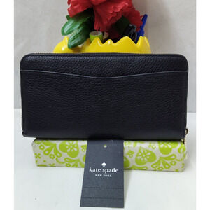 Kate Spade New York Black Pebbled Leather Zip Around Long Wallet - NEW