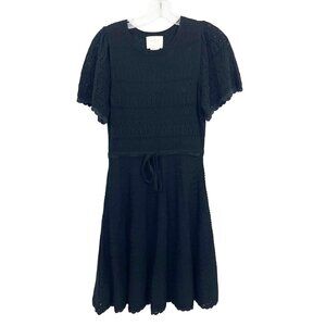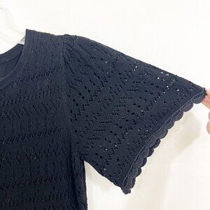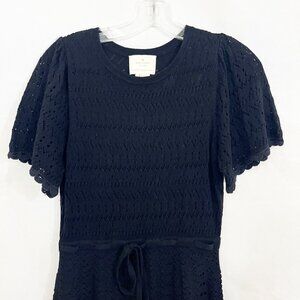 Kate Spade New York Black Pointelle Knit Scalloped Hem Midi Dress - Size XS