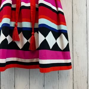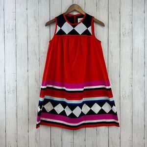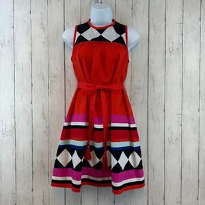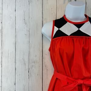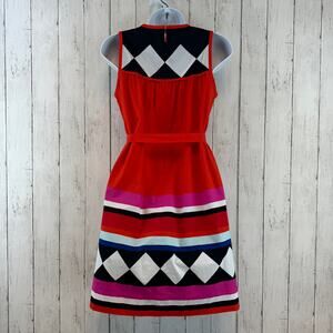 Kate Spade New York Black Red Geo Babydoll Belted Sleeveless Dress Size XS