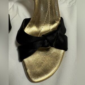 Kate Spade New York Black Satin Knot Detail Gold Elegant Classy Heels 5.5 Italy