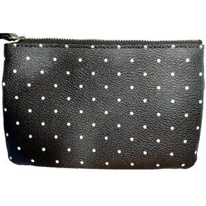 Kate Spade New York Black & White Polka Dot Wristlet PVC Leather 2 Zippers Purse