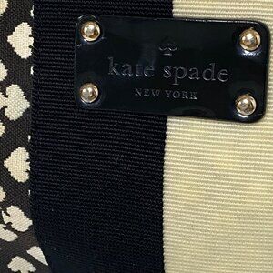 Kate Spade New York Black and off-white spade pattern on the sides with a black and off-white striped ribbon detail in the center.