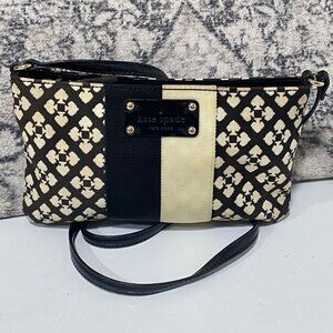 Kate Spade New York Black and Off-White Spade Pattern Crossbody Bag