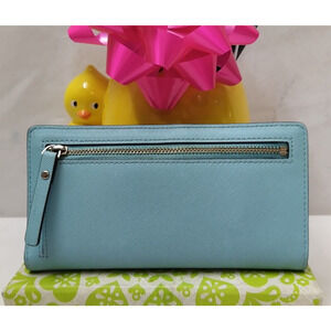 Kate Spade New York Blue Crossgrain Leather Credit Cards ID Window Bifold Wallet