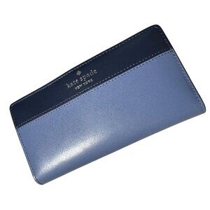 Kate Spade New York Blue Leather Wallet With Snap & Zipper Closures
