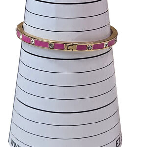 Kate Spade New York Bracelet Goldtone Hot Pink Crystal Enamel Hinge Bangle EUC