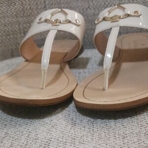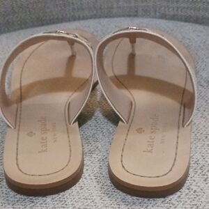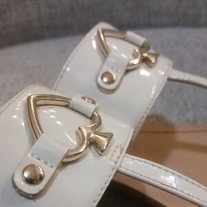 *Chic white sandals by Kate Spade. Features stylish gold detailing. Ideal for casual elegance.