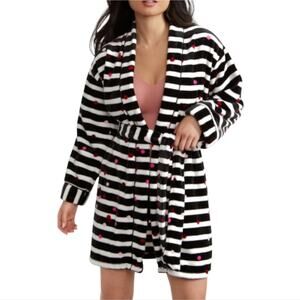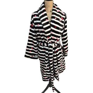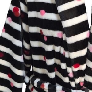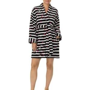 Kate Spade New York® Chenille Wrap Robe Black & White Striped With Polka Dots Medium