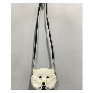 This playful crossbody bag is designed to resemble a fuzzy polar bear, adding a whimsical touch to any outfit.