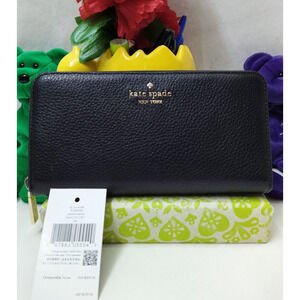 Kate Spade New York Continent Black Pebbled Leather Zip Around Wallet - NWT $239