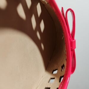 These Kate Spade flirty flats are stylish women's shoes perfect for various occasions such as travel, weddings, parties, work, and more. These slip-on flats feature a round cap toe shape, woven leather upper material, rubber outsole, and a vibrant coral pink color with a shiny finish. The sandals also have a cute bow accent and a Barbie character, making them a trendy and comfortable choice for the summer and spring seasons. Feminine and romatic, perfect for those who want a touch of playfulness in their footwear.