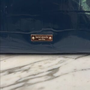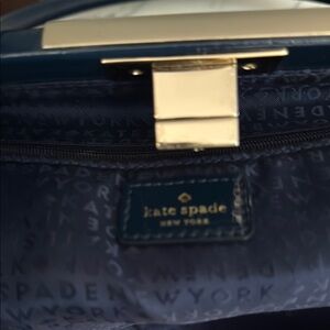 This large Kate Spade New York Knightsbridge handbag with dust bag features a stylish sophisticated crocodile-embossed design. Petro blue, in excellent condition inside and out! Pre-owned with minor rub on front hardware and bottom feet. All 4 Bottom corners are great!!! See pics.