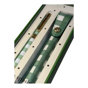 Kate Spade New York Daisy Gingham Stylus Pen & Pouch Green NEW