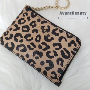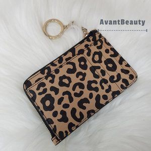 Kate Spade New York Darcy L-zip Key Chain Wallet Card Holder Brown Leopard Black