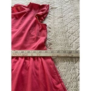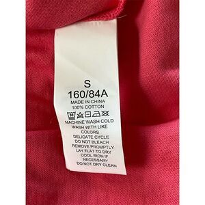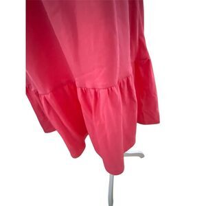 This Kate Spade New York knit trapeze dress is a stylish choice for women. It is a size S, regular fit, and comes in a vibrant coral pink color. The dress is short in length and made from 100% cotton, ensuring a lightweight and flowy feel. It features ruffle sleeves and a tiered design, adding a touch of elegance. The dress is machine washable for easy care. It is pre-owned but in excellent condition with no flaws.