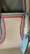 this Kate Spade handbag comes with a long over the detachable shoulder strap or just the two handles. It has a blue lining, which is clean and an inner pouch, which is also very good condition. The bottom studs show a little bit of wear. overall a very nice little hand bag.