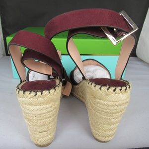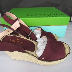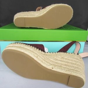 Add a stunning element to your bright ensemble with the Kate Spade New York Felipa sandals. Leather upper. Ankle strap with adjustable buckle closure. Iconic spade hardware. Open toe. Leather lining and footbed. Espadrille wedge and platform. Synthetic outsole. Imported. Measurements: Heel Height: 4 in Platform Height: 1 1/2 in