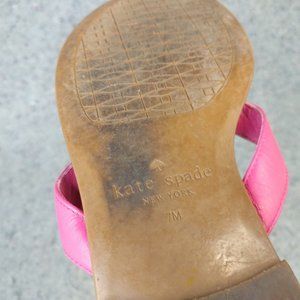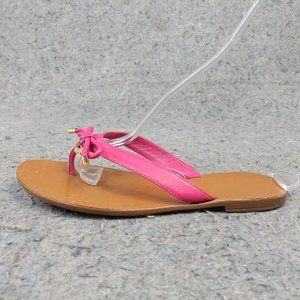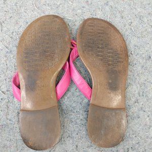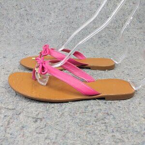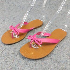 Kate Spade New York Flip Flop Womens Size 7 Shoes Thong Sandals Pink Bow Gold Charm Logo