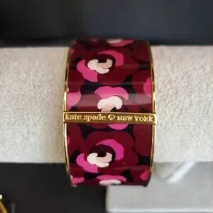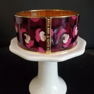 Kate Spade New York Floral Enamel Bangle Bracelet Burgundy Pink Gold Tone Wide