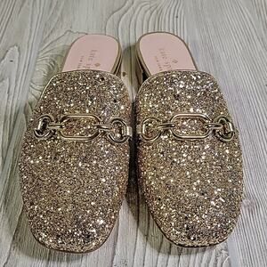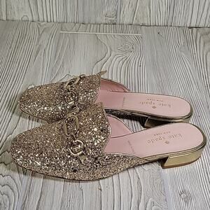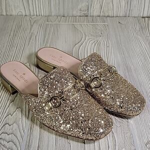 Kate Spade New York Glendi Gold Glitter Slip On Mules Womens Size 5.5 NEW