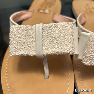 Kate Spade New York Glitter Bow Thong Sandals White Flip Flop Slides Women’s 8.5